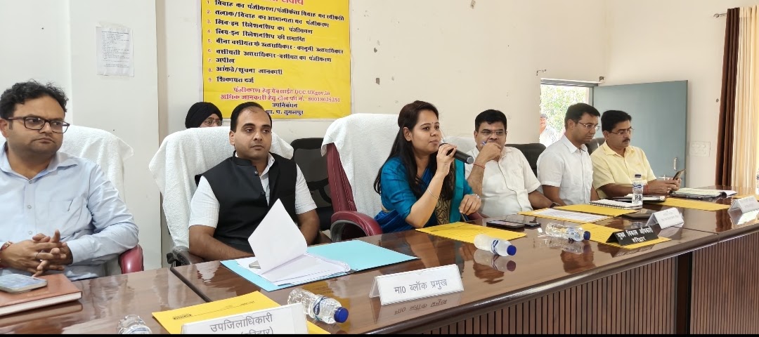 बैठक में विभिन्न विभागों द्वारा चलाई जा रही जन कल्याणकारी योजनाओं के बारे में विस्तृत जानकारी दी गई साथ ही परियोजना निर्देश ने यूसीसी पंजीकरण के अंतर्गत दी जाने वाली सेवाएं के अलावा ज्यादा से ज्यादा लोगों द्वारा पंजीकरण करवाए