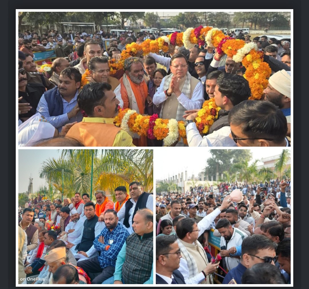 गन्ना मूल्य वृद्धि पर उत्साहित किसानों एवं जन प्रतिनिधियों ने पूर्व केबिनेट मंत्री स्वामी यतीश्वरानंद के नेतृत्व में हरिद्वार पहुचें सीएम धामी का किया भव्य स्वागत,
