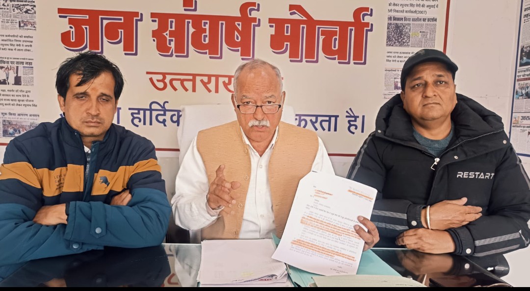 देहरादून /विकासनगर : जन संघर्ष मोर्चा अध्यक्ष एवं जीएमवीएन के पूर्व उपाध्यक्ष रघुनाथ सिंह नेगी ने पत्रकारों से वार्ता करते हुए कहा कि वर्ष 2022 में सहकारिता मंत्री धन सिंह रावत की सर परस्ती में ऑपरेटिव बैंक भर्ती घोटाला हुआ, जिसमें प्रत्यक्ष/ अप्रत्यक्ष तौर पर करोड़ों रुपए का लेनदेन हुआ, जिसकी पुष्टि बैंक खातों से की जा सकती है। नौकरी पाये लोगों के खातों की बैंक डिटेल से 10 से 15 लाख रुपए अभ्यर्थियों ने अपने खातों से लेनदेन किया।